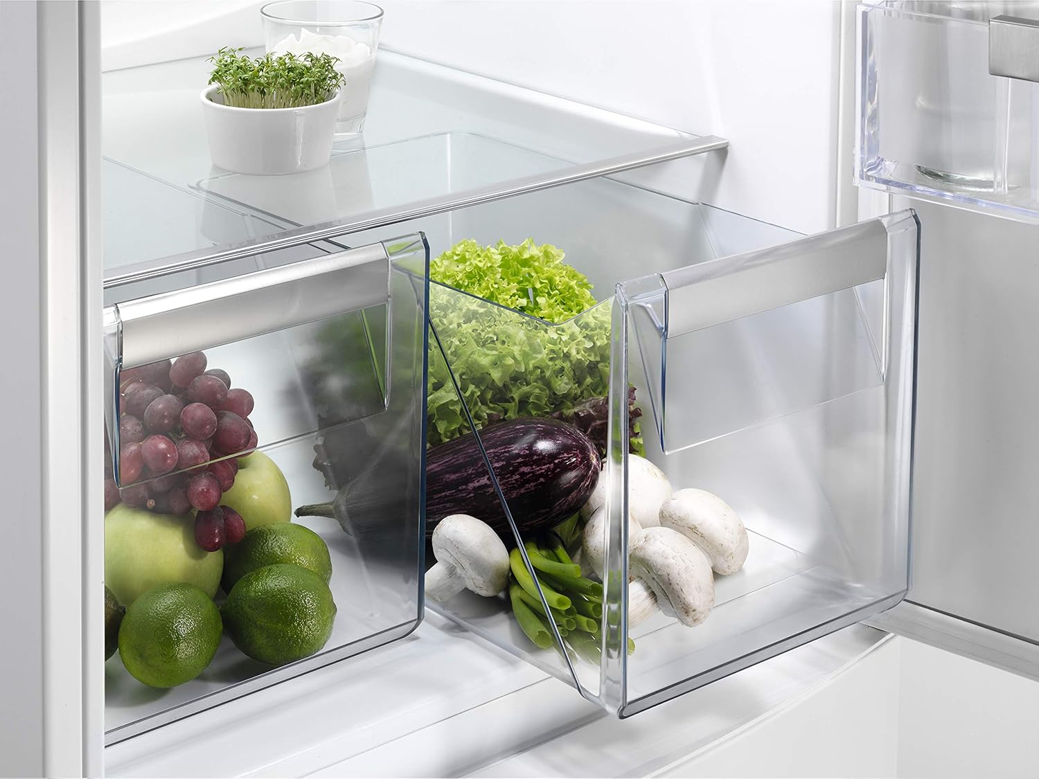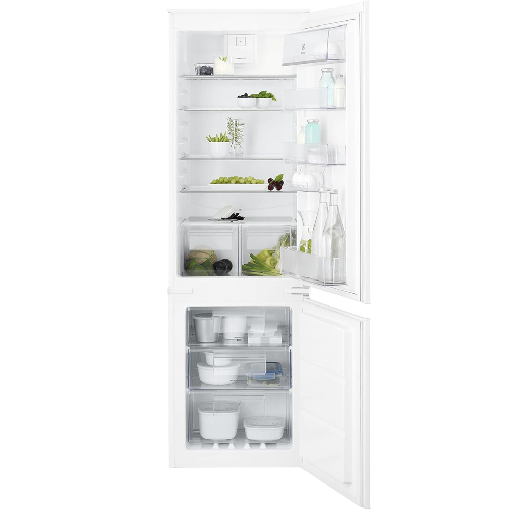Descrizione: Il Frigorifero Combinato da Incasso Electrolux ENT6TF18S offre un design elegante e una capacità totale di 267 L, suddivisi tra frigorifero e congelatore. Grazie alla tecnologia No Frost, non dovrai più preoccuparti della formazione di ghiaccio, e il sistema di raffreddamento ventilato garantisce una distribuzione uniforme della temperatura. Il frigorifero è dotato di ripiani regolabili in vetro temperato e di cassetti per frutta e verdura con controllo dell’umidità. La funzione SuperFreezing permette di congelare rapidamente gli alimenti per preservarne al meglio le proprietà. Il display LED e il controllo elettronico rendono l’utilizzo semplice e preciso.