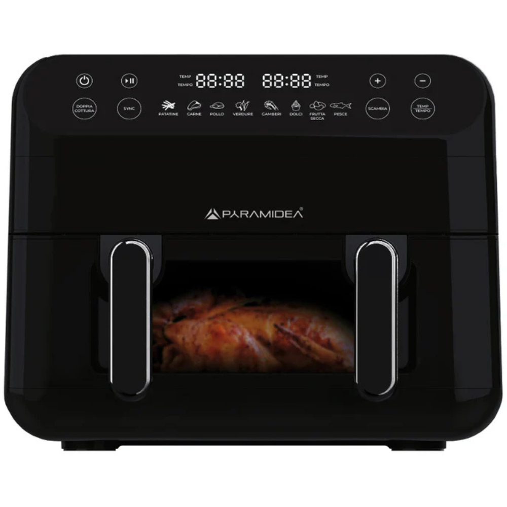 La friggitrice ad aria Pyramidea AF1220 è un elettrodomestico versatile e capiente, ideale per chi desidera preparare piatti gustosi in modo più sano, riducendo l’uso di olio. Grazie ai suoi 2000 W di potenza e alla capacità di 12 litri, è perfetta per famiglie numerose o per chi ama cucinare in grandi quantità. Dotata di 10 programmi preimpostati, permette di cuocere, grigliare e arrostire con facilità. Il display digitale touch rende l’utilizzo intuitivo, mentre la luce interna consente di controllare la cottura senza aprire lo sportello. Un alleato perfetto in cucina per chi vuole combinare gusto e benessere.