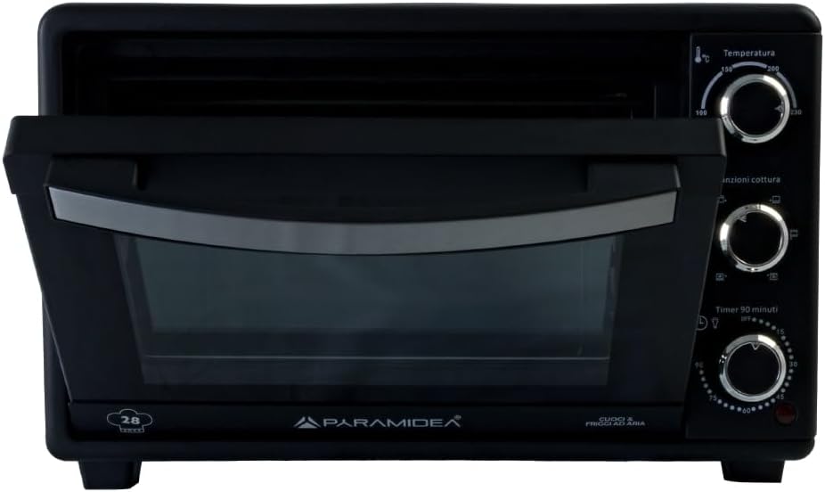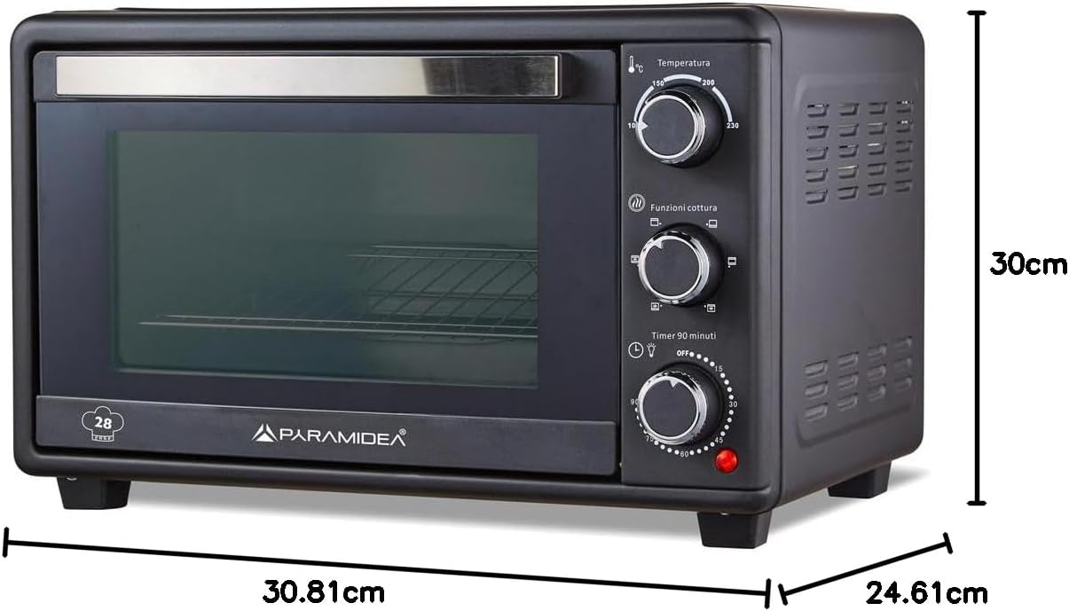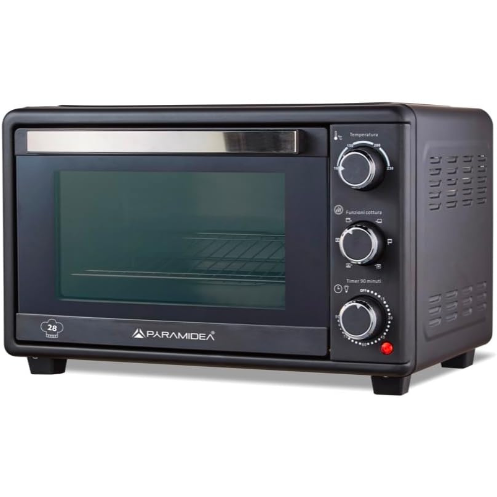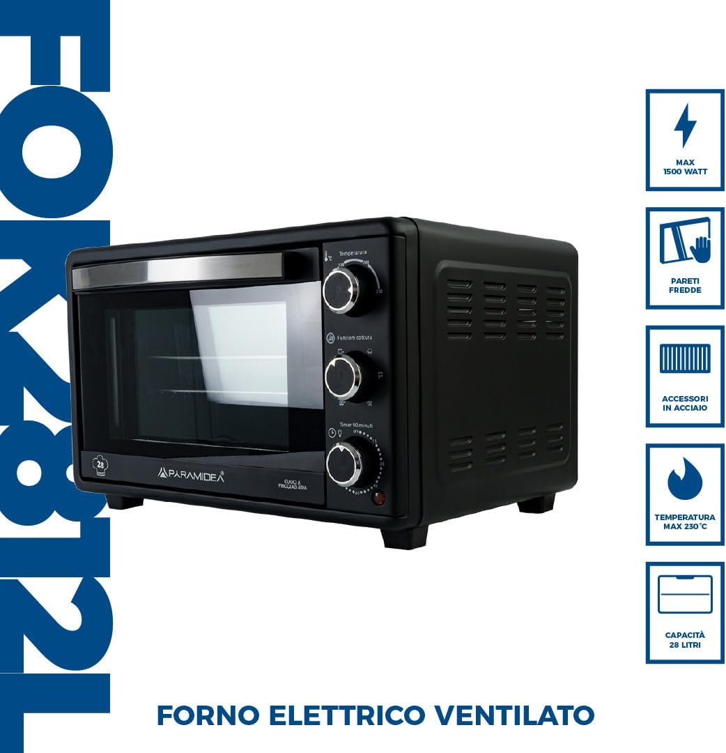 Il forno elettrico Pyramidea FOK2812L è un modello compatto e versatile, ideale per chi necessita di un elettrodomestico performante senza occupare troppo spazio. Dotato di ventilazione indipendente, permette una cottura uniforme ed efficace. La sua struttura sicura, con sportello e pareti esterne a bassa temperatura, lo rende perfetto anche per l’uso domestico in presenza di bambini. Con sei modalità di cottura, una temperatura regolabile fino a 230°C e una capacità di 28 litri, questo forno è un’ottima soluzione per qualsiasi esigenza culinaria.